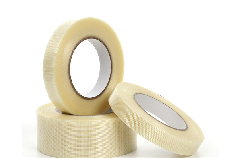 Traku iz vlaken iz steklenih vlaken je izdelan iz visoke trdne preje ali krpe iz armiranega podložnega materiala, sestavljenega poliestrskega filma, prevlečenega z močnim lepilom, ki je občutljivo na vročo talino. Moč traku iz steklenih vlaken je veliko večja kot pri navadnem traku, viskoznost pa je bila tudi močno izboljšana. Odpornost proti obrabi in odpornost na vlago sta tudi izjemno izjemni. Zato je vlaknast traku ne moremo uporabiti le za tesnjenje in pakiranje skupnih škatel, ampak tudi za težko embalažo, povezovanje in celo pritrditev jeklenih plošč ter pritrditev premičnih delov domačih naprav (kot so pladnji za hladilnike, predali itd.).
