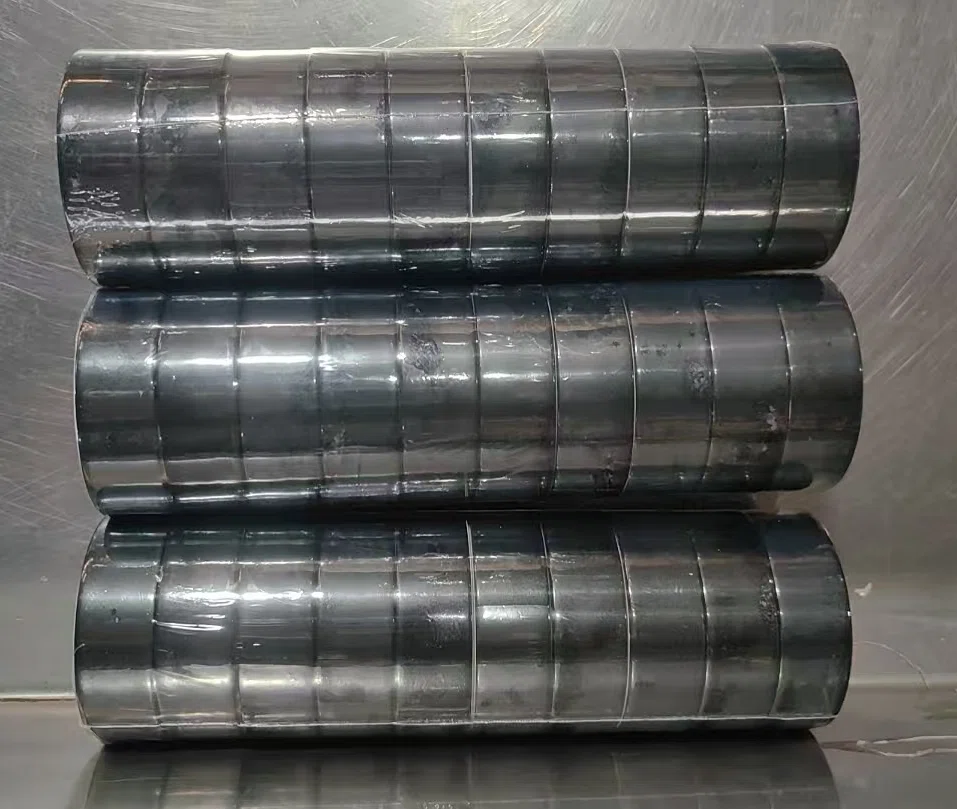 1. Lepilni trak, nalepljen na gladke embalažne škatle iz sijajnega papirja.